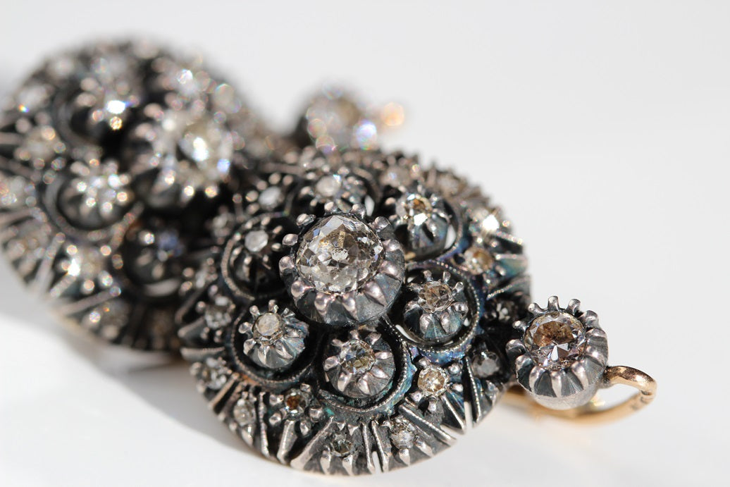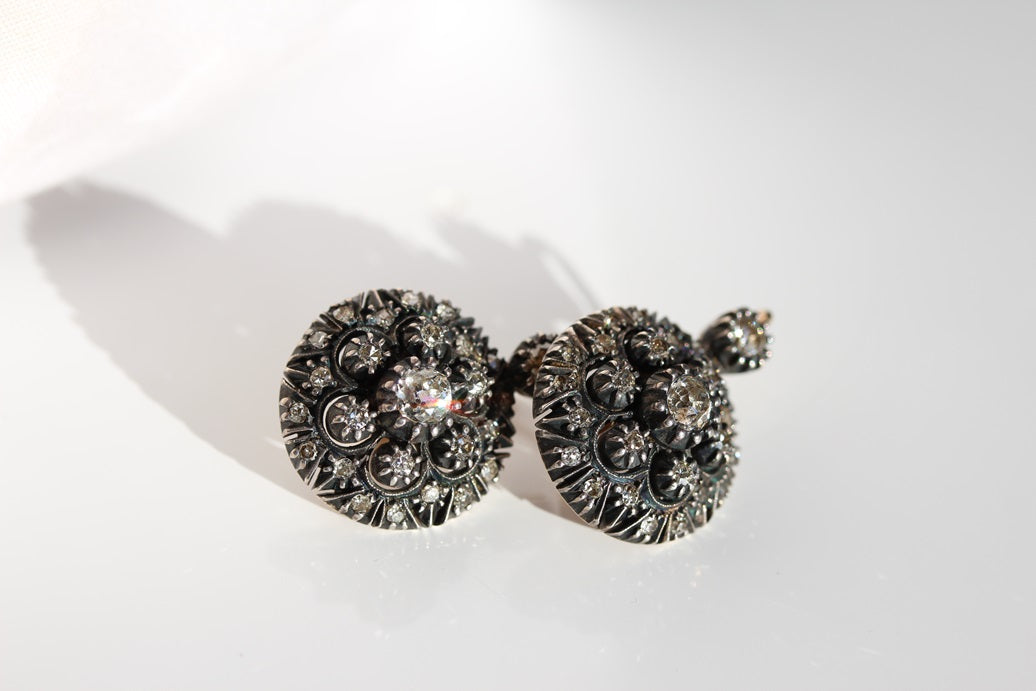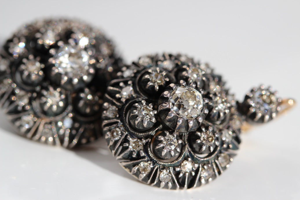 Antique Portuguese Old Cut Diamond Floral Cluster Earrings, Circa 1930s – E0119
