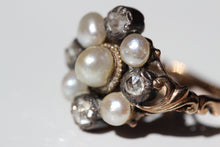 Gorgeous antique Victorian rose cut diamond & white pearl cluster silver topped 14k gold engagement ring circa 1800's, in excellent vintage condition with very little sign of wear -R0696